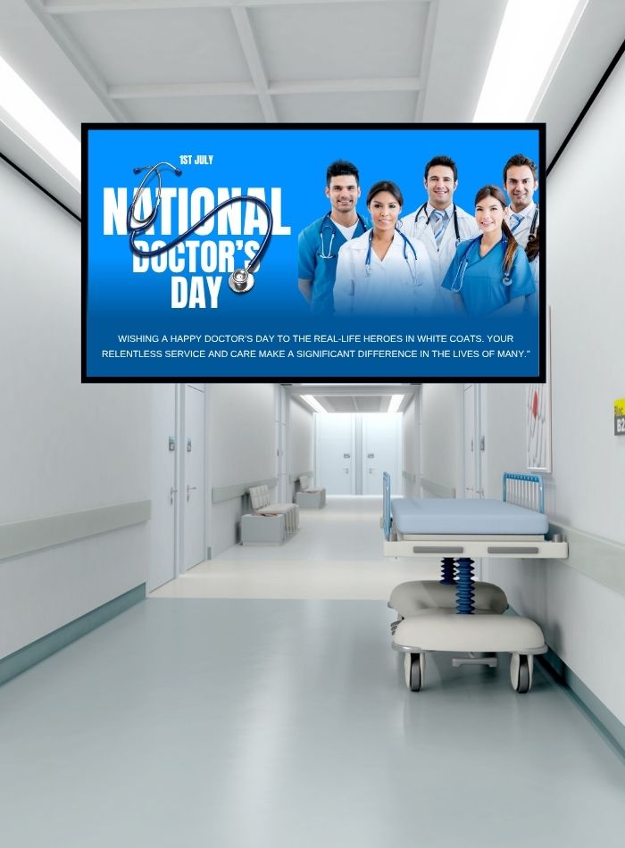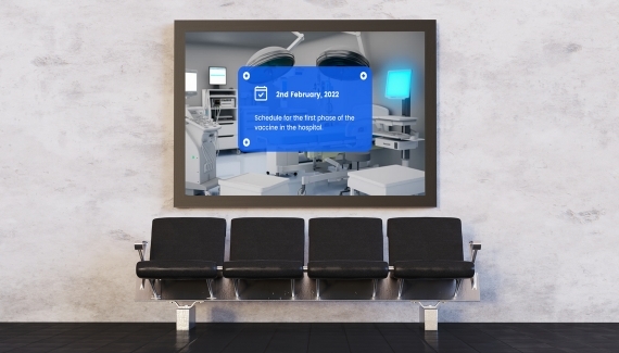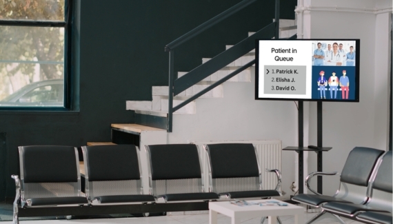 You can display a wide range of content including wait times, patient queues, directional signage, educational videos, health tips, doctor availability, news feeds, and staff messages.