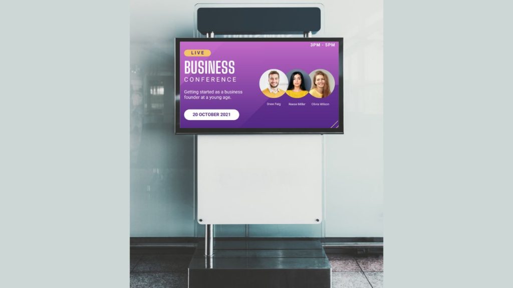 Post digital agendas, speaker lineups, sponsor content, and room directions to enhance event professionalism.