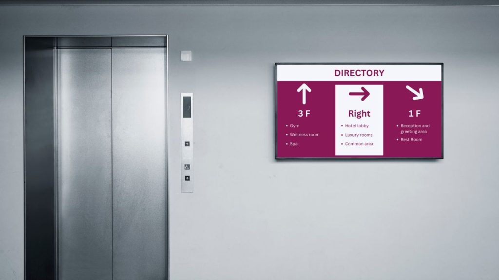 Digital signage keeps guests informed with real-time updates, welcome messages, local recommendations, and directions. It enhances the overall ambiance while helping guests feel more connected to the services offered.