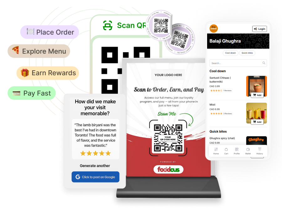 - All-in-One Scan: A single, smart QR code handles Menu viewing, seamless Ordering, and prompts for instant Google Reviews (GMB), turning foot traffic into digital users.