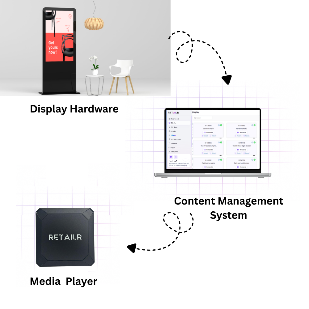 Digital signage systems use LCD, LED, and projection screens to display multimedia content, enabling real-time communication of targeted messages. Easily managed using Retailr's Digital Solution software, they enhance brand awareness and customer experience across various environments like retail, offices, and hospitals.
